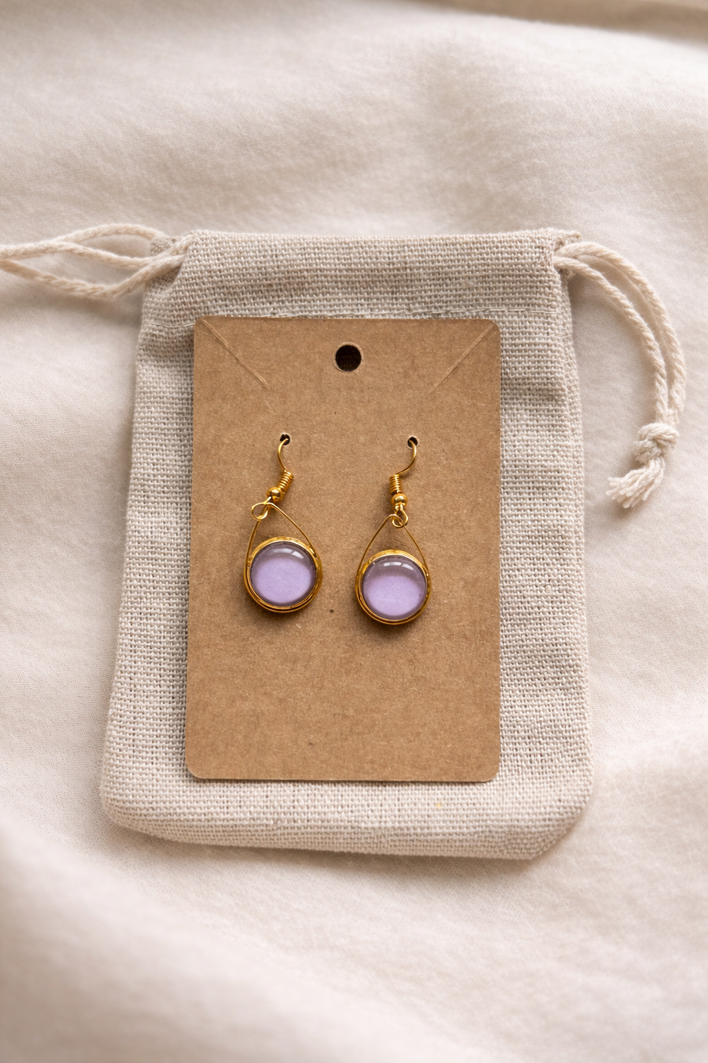Biżuteria prezentowana jest na karcie ekspozycyjnej, następnie trafia do delikatnego woreczka jubilerskiego i owinięta zostaje miękką bibułką — kolorystycznie dobraną do produktu lub sezonowo świąteczną.