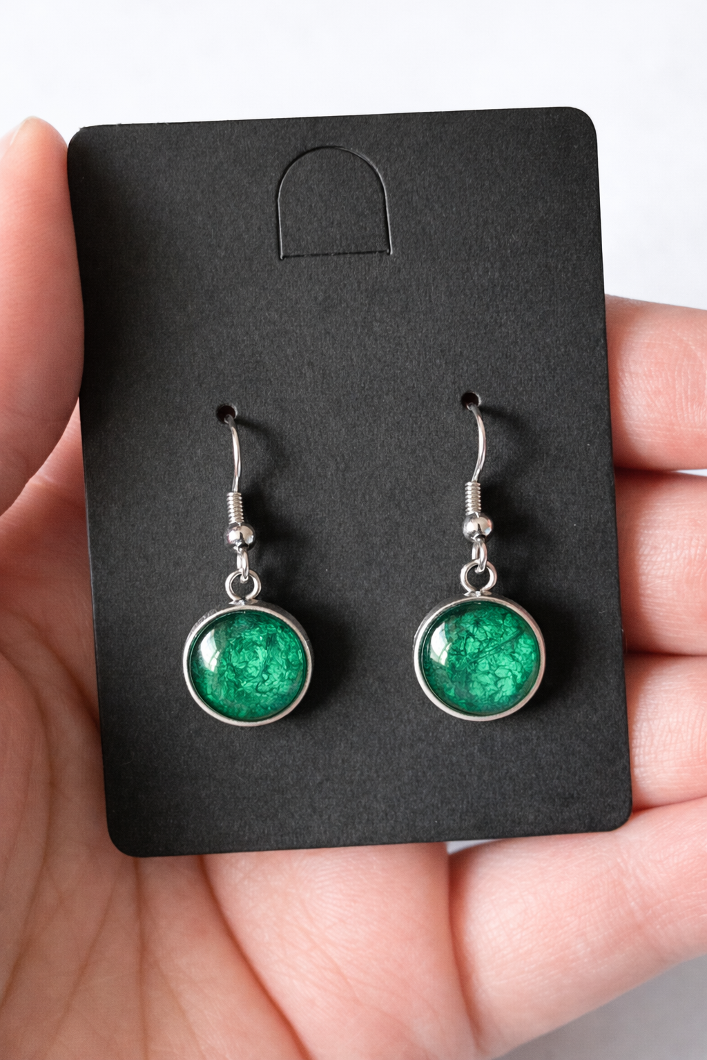 Oczko w odcieniu głębokiej zieleni przyciąga uwagę naturalną strukturą i delikatną grą światła. Kolor jest nasycony, ale stonowany — inspirowany naturą i łatwy do zestawiania z codzienną garderobą.